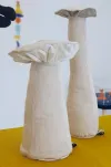 Hanna Shim's previous chunky soft sculpture work, talk about childish naivety whilst holding a sinister and foreboding undertone. Despite their cute exterior, they imbue a sense of unexpected twists and irony as the forms undergo a sense of metamorphosis. In her upcoming series Bone Like This, her work takes on an even darker tone as she speaks about death and mortality.